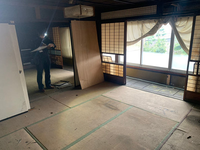 建物としては、築100年くらいとのことで、中庭もあり、とても風情ある建物でした。古民家を再建するために建物の一部を取壊し、トイレやお風呂などの水回りをリフォームするとのことでした。